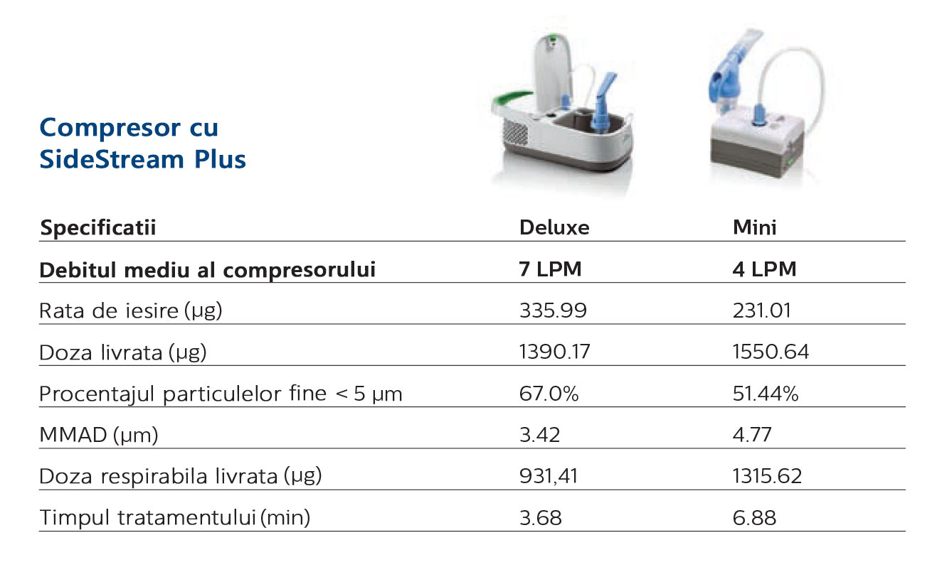 Nebulizatoarele cu SideStream sunt proiectate pentru a atinge performanta optima atunci cand au un compresor corespunzator.