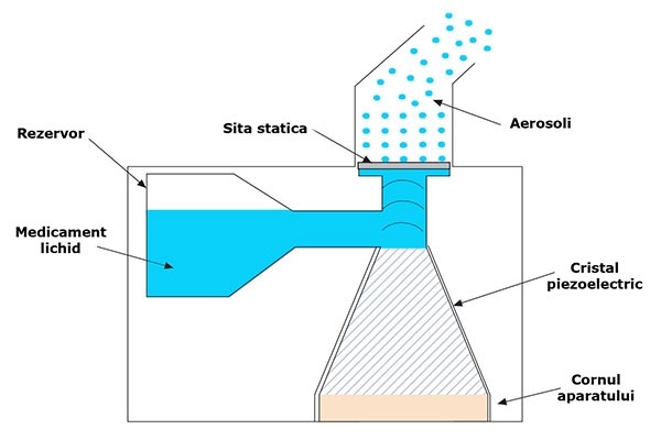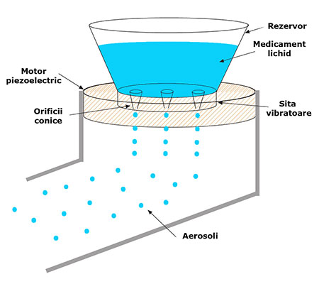 Aparatul de aerosoli cu mesh static a fost inventat in anii 80 si functioneaza prin aplicarea fortei asupra substantelor medicamentoase lichide, care sunt impinse prin mesh sub forma de aerosoli. In cazul nebulizatorului cu mesh activ, vibratiile sunt cele care genereaza vapori. Un inel prozoelectric intra in contact cu mesh-ul, care este de fapt o sita, cu gauri foarte fine, nu mai mari de 3,8 μm. Atunci cand acesta vibreaza se produce un nor de aerosol cu particule foarte fine. Dupa ce trec de sita, vaporii se coaguleaza ajungand la dimensiunea de 4-5 μm.
